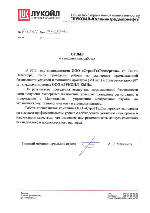 ОАО «РПК-Высоцк «ЛУКОЙЛ-II» подтверждает высокую квалификацию, знания и опыт сотрудников ООО «СтройТехЭкспертиза» в области диагностики технического состояния зданий и сооружений и рекомендует, как надежного и добросовестного партнера.